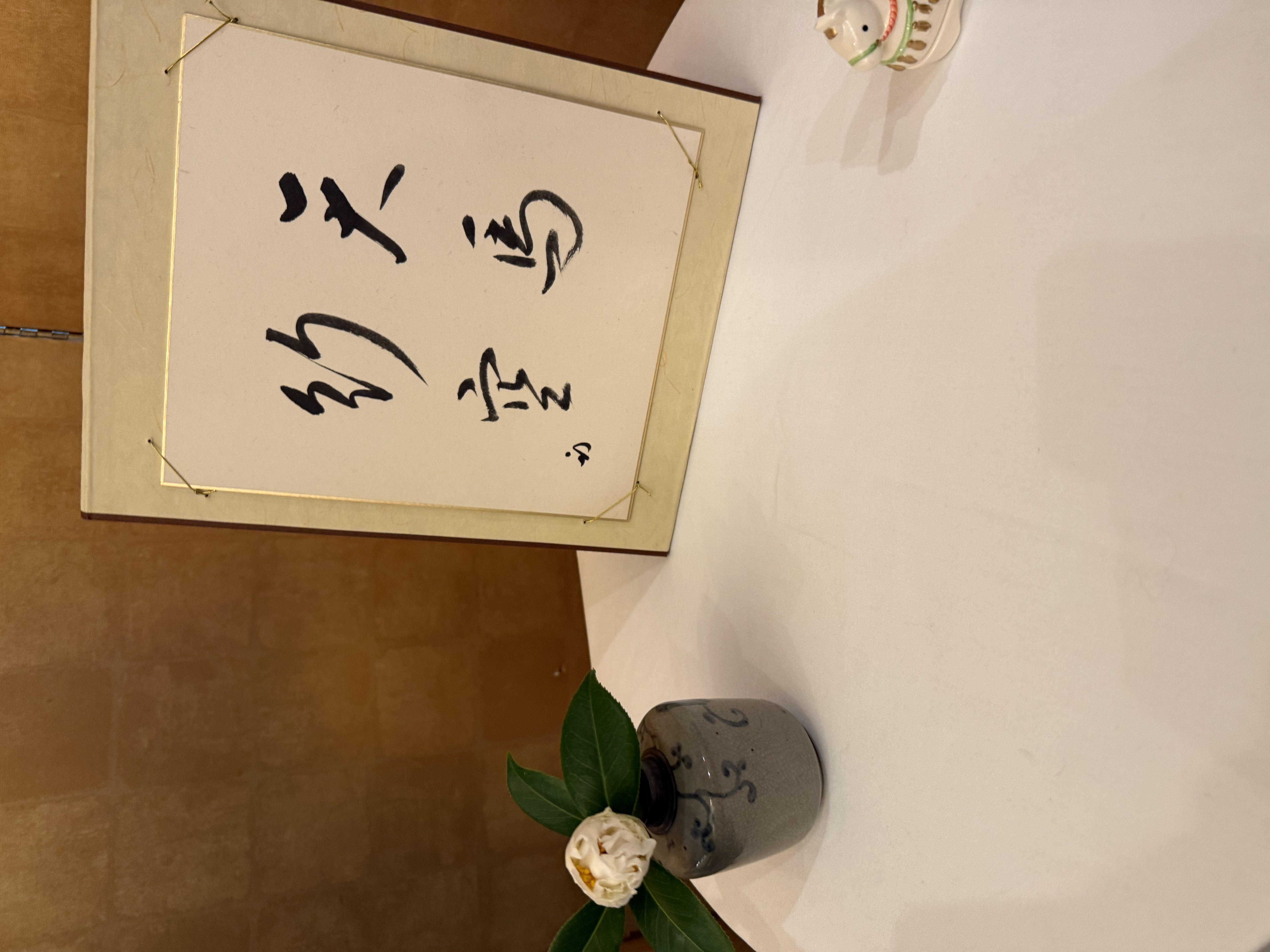 また、立礼席では、色紙に「天馬行空」を掲げ、干支にちなむ馬の茶碗と猫の絵柄の茶碗を用い、皆様のご活躍と福を願う趣向といたしました。